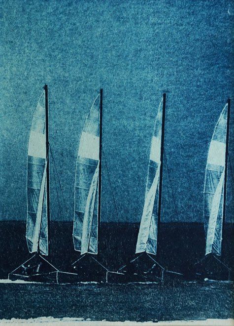 L'aspect d'un cyanotype est mate, les bleus sont tannés.